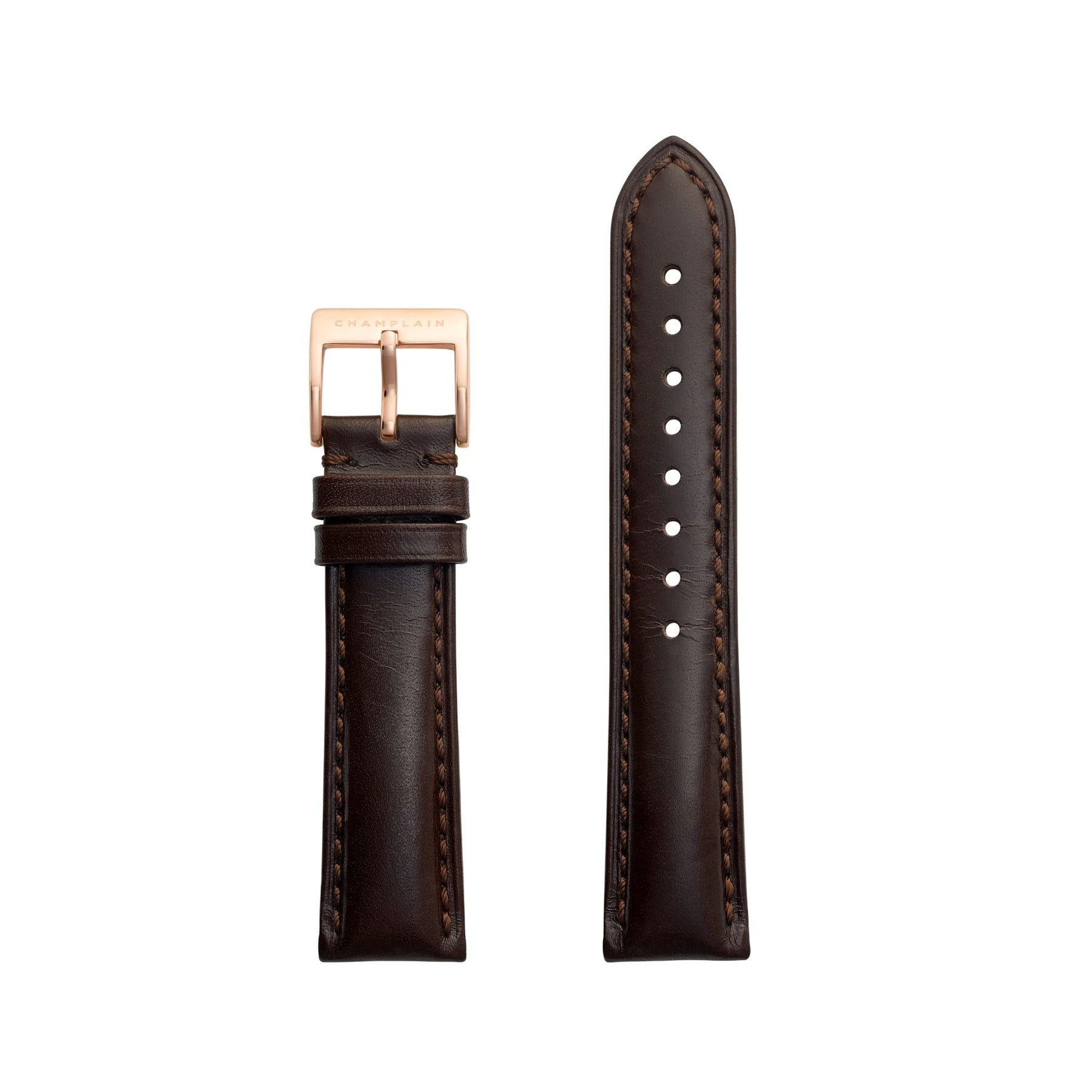 Brown-Rose Gold Leather Watch Strap by Champlain