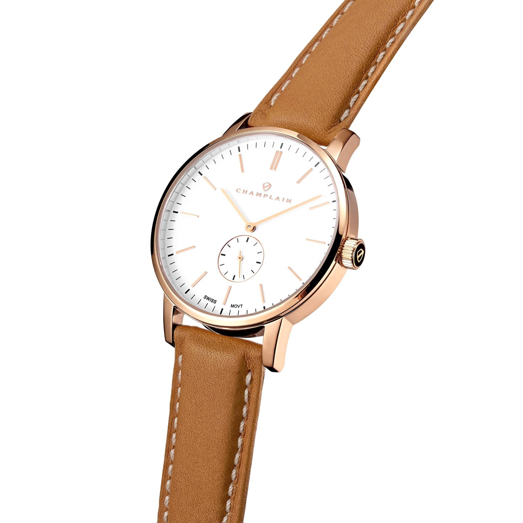 Rose Gold/White - Tan Governor Watch by Champlain